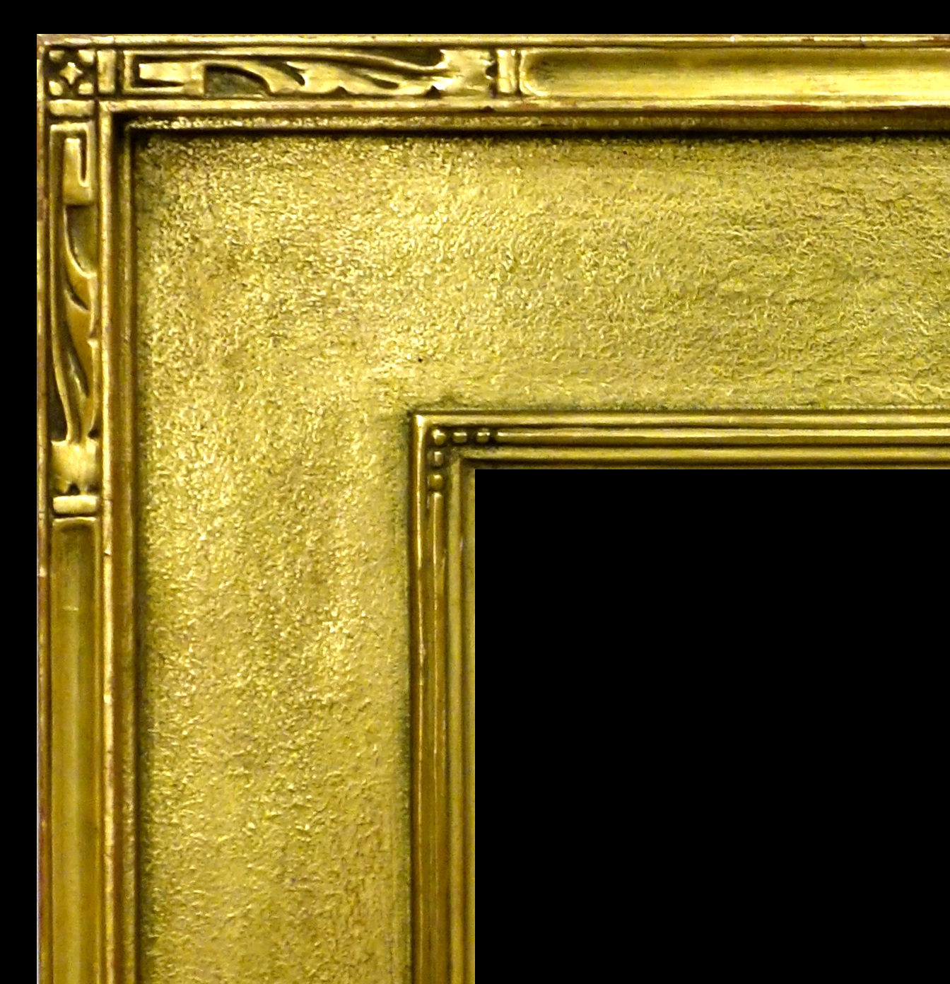 Royal Art, ca. 1910, carved and gilded in low karat pale gold, having cassetta profile.