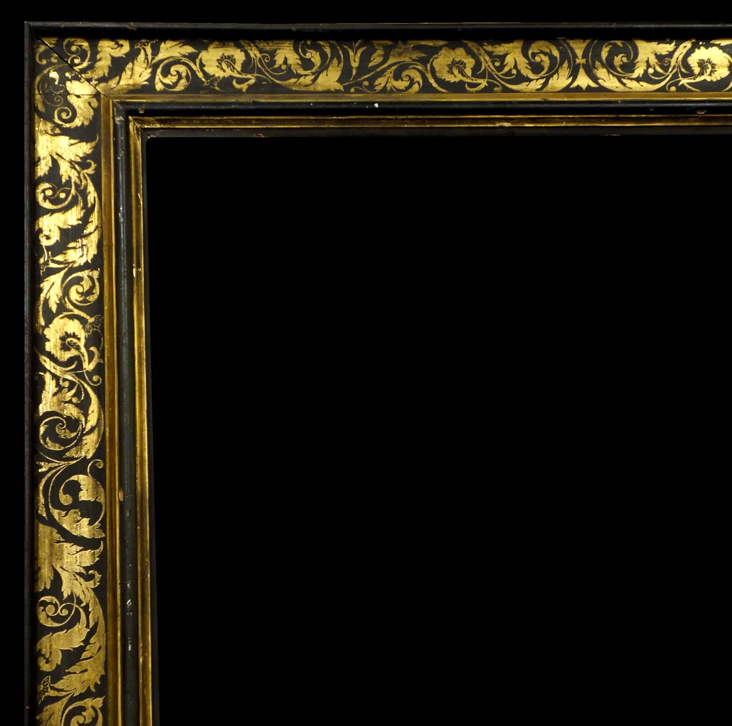 Italy, 18th century, having cassetta profile with black and gold sgraffito decoration.